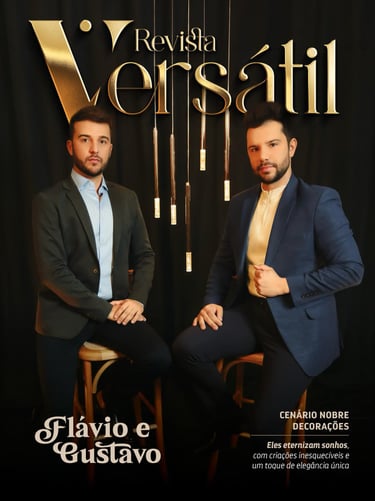 Referência em transformar momentos em memórias inesquecíveis, Flávio Castro Fernandes e Gustavo Castro Fernandes, da Cenário Nobre Decorações, recebem o merecido destaque como capa da Revista Versátil.